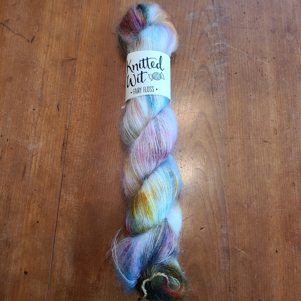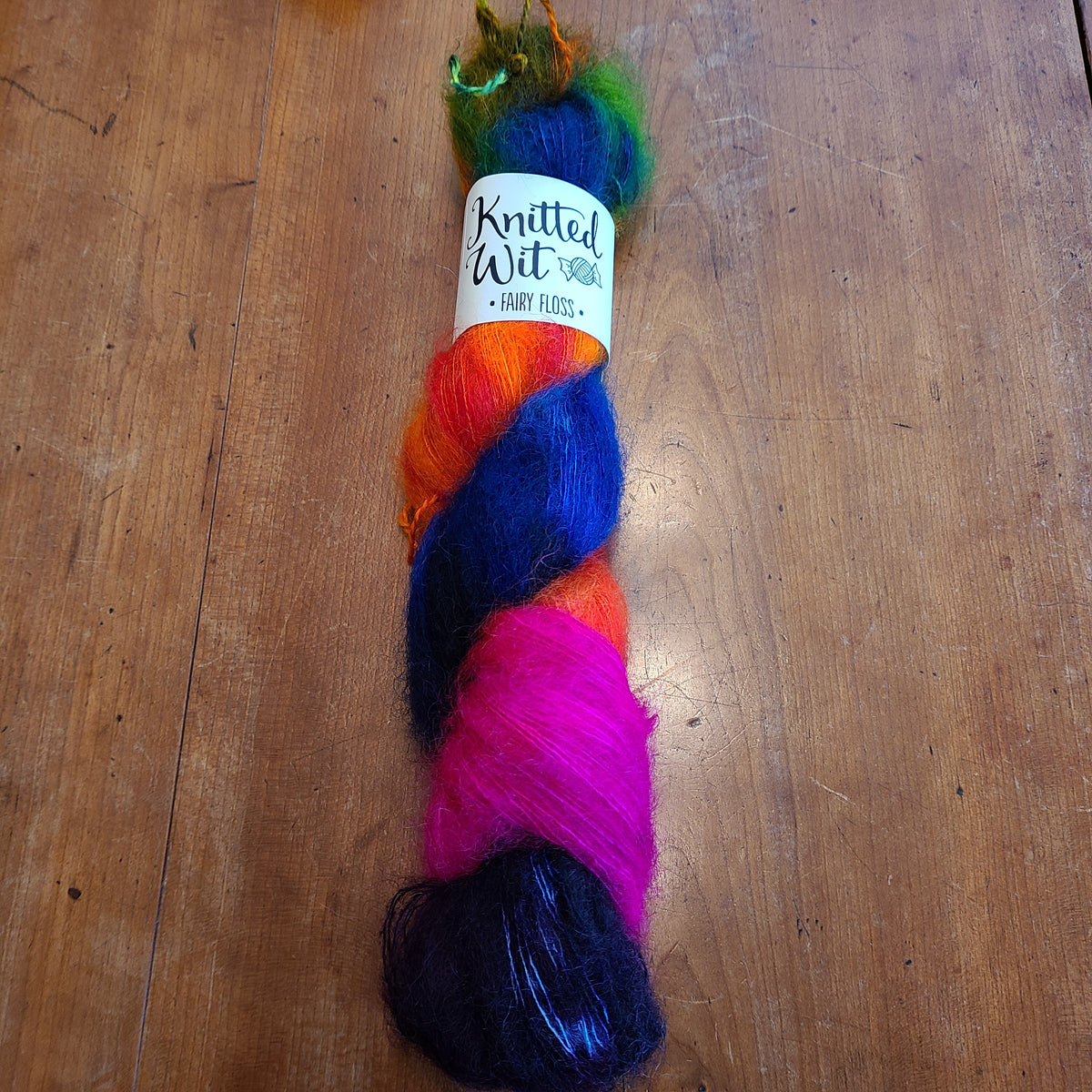 Fairy Floss, new to Twist, comes from the Portland, Oregon woman owned business.  Silk and mohair are combined into a lovely haloed yarn and then dyed as only the Knitted Wit does.