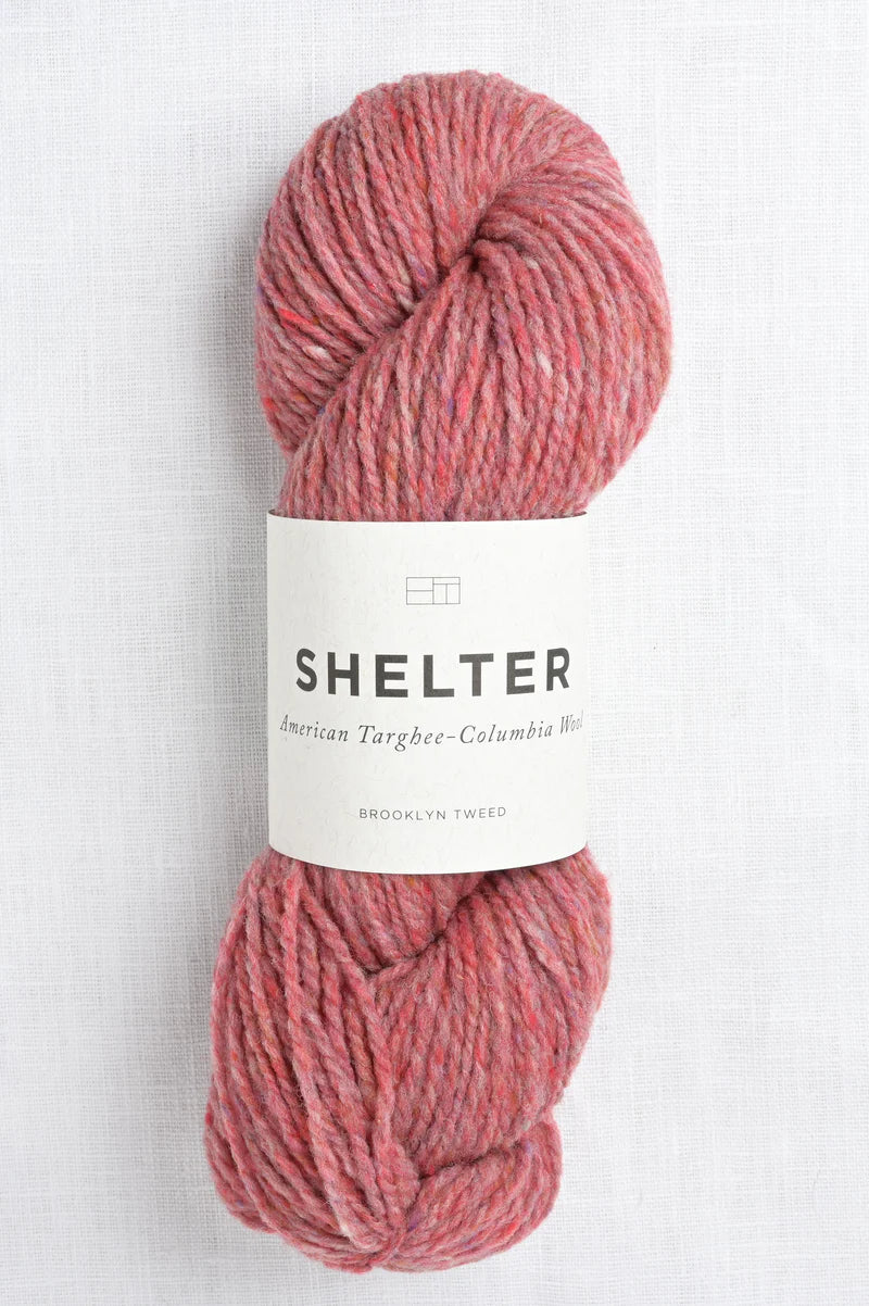 Meet Shelter, Brooklyn Tweed's versatile 2-ply worsted weight yarn. Soft and sturdy American Targhee-Columbia wool is spun woolen style – airy clouds of carded fiber become a yarn with remarkable lightness, warmth and a traditionally handcrafted appearance, ideal for sweaters, cozy accessories, and blankets. Wet block after knitting to reveal Shelter’s full beauty as each stitch relaxes and bonds with its neighbors to produce a plush fabric with a soft, fuzzy halo.